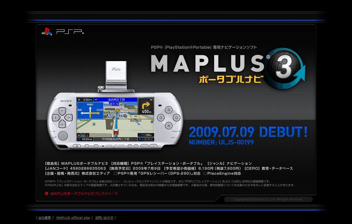 フト「MAPLUSポータブルナビ3」を2009年7月9日(予定)に発売致します。