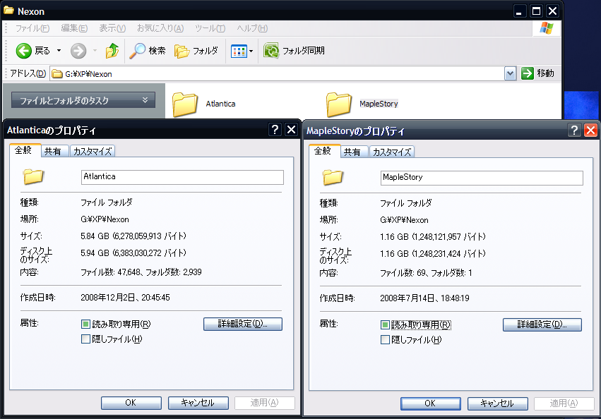 アトランティカ と メイプルストーリー の容量を比べてみた
