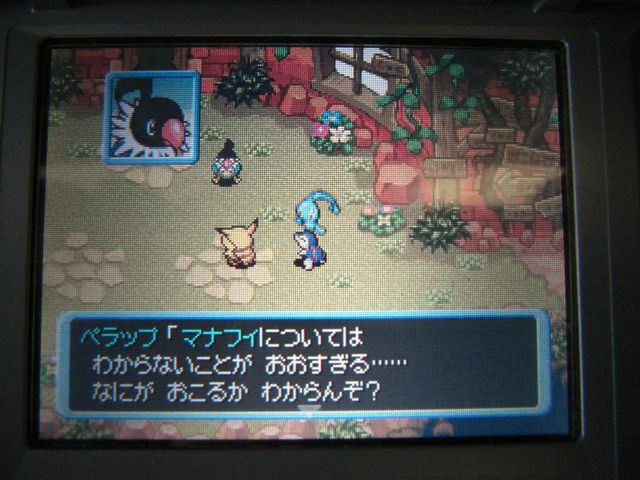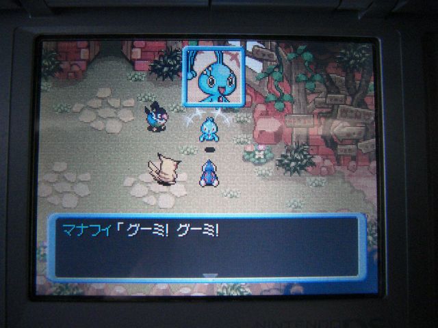 昨日はマナフィが生まれて、あおいグミを渡そうと思ったところで終わりました。