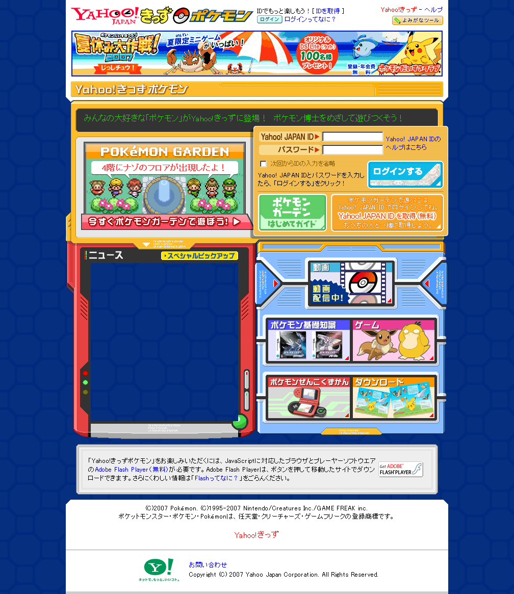 | うまくいけば、このように表示されると思います。 ここでうまく表示されない場合は、 Adobe社提供の「Flash Player」が必要となります。 ここでは説明しませんが、こちらに詳細が載っています。 |