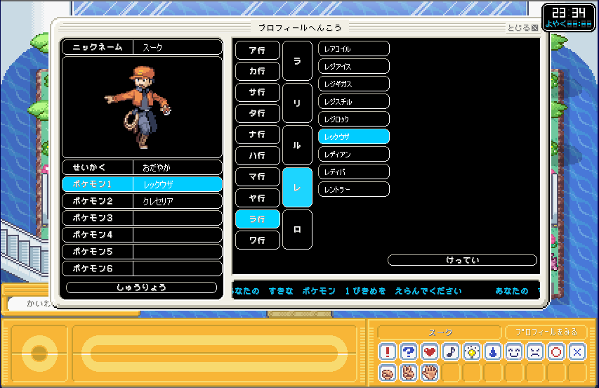 | 最後に、左側にある 「ポケモン」(各)数字をクリックして、 自分の手持ちを決めます。 ここポケモンガーデンは、 ポケモンバトルはないので 基本的に好きなポケモンを選べばいいと思います。 |
