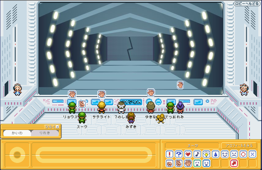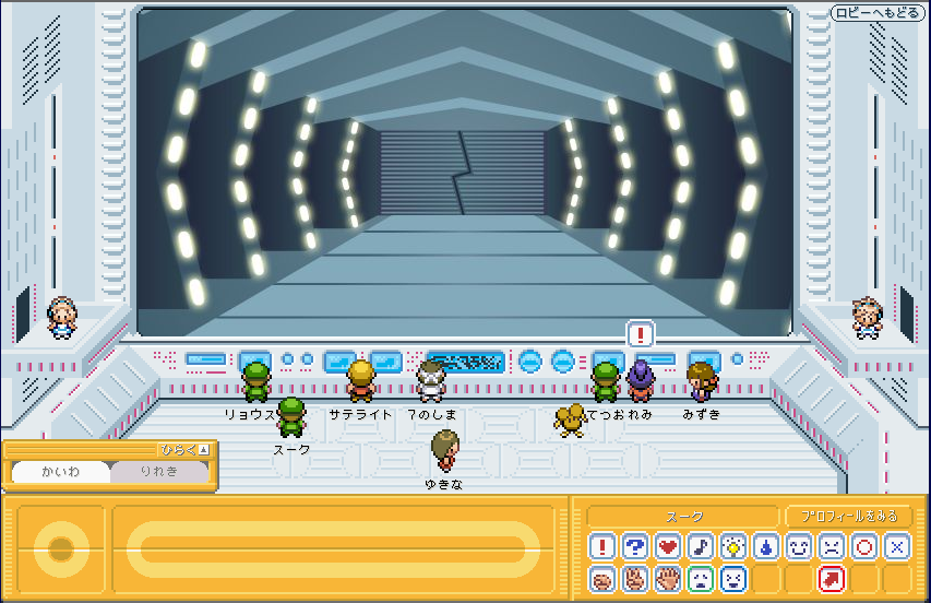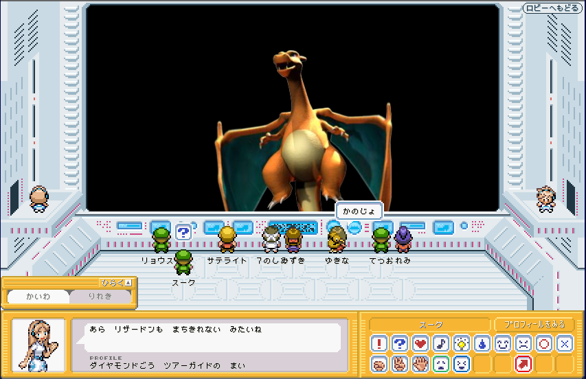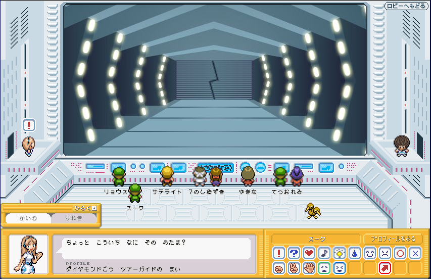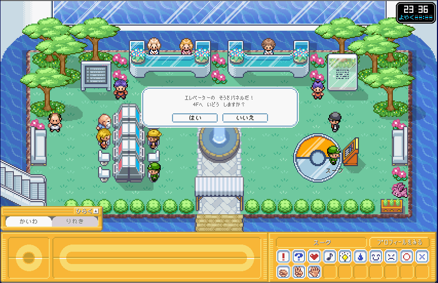 | モンスターボールの模様の横にある機械をクリック! すると、4Fへ移動しますか? と出てくる 4Fには、新しくできた「じゃんけんバトル」という施設がある。 が、今は、階順に見ていきたいのでパス。 |