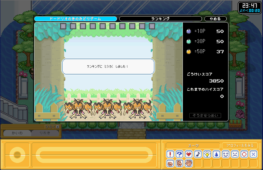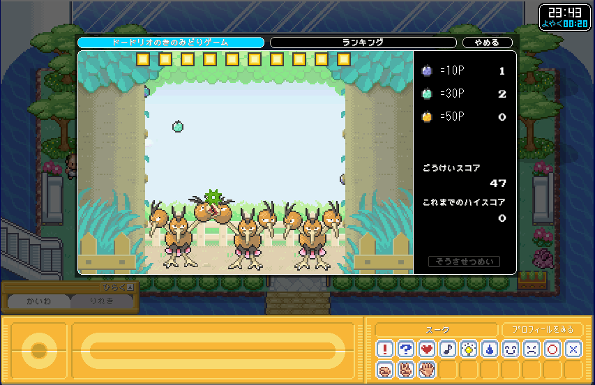 | 前にもあった「ドードリオのきのみどり」である。 これは、FRLGでもあたミニゲームの1つでもある。 |
