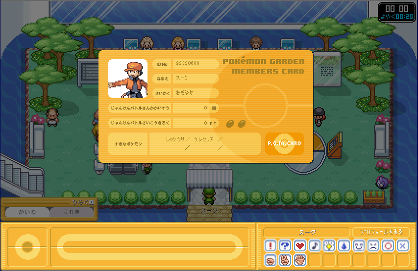 | すると、このように表示されると思います。 (この画像のステータスは、既に遊んでいるので、初期状態ではありません) では、ポケモンガーデンへ入るをクリック! |